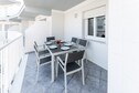 Dit moderne appartement, gelegen op de 4e verdieping met lift, biedt een adembenemend uitzicht over de golven en creëert een serene en ontspannen sfeer. Stap het terras op of kijk door de kamerhoge glazen deuren in de woonkamer om van de horizon te genieten. De buitenruimte is perfect voor een kopje koffie in de ochtend of een drankje in de avond, terwijl u luistert naar het zachte ritme van de zee.