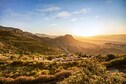 We kwamen in het donker aan, dus er viel onderweg nog niet veel te zien. Na contact met de beheerder was afgesproken dat ik zou bellen wanneer ik geland was en die kant op kwam. Desnoods belde ik nog maar eens als ik de villa niet zou vinden. Bij aankomst stond hij al te wachten, en werden we zeer hartelijk begroet. 's Morgens bleek wat een prachtig uitzicht we hadden, en hoe heerlijk rustig het rondom de villa was. Het bleek een prachtige uitvalsbasis voor onze uitstapjes, want je kon binnen een paar minuten werkelijk alle kanten op.
