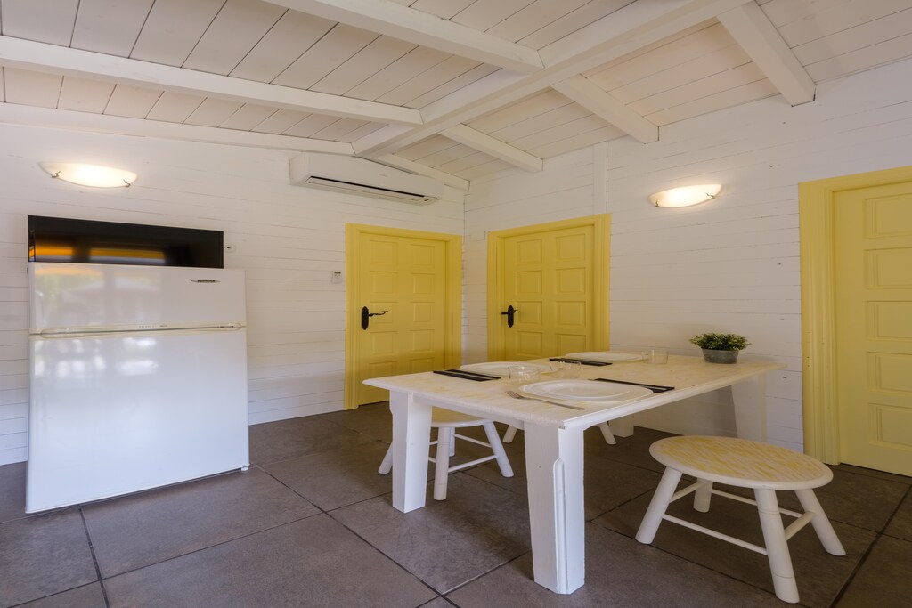 Ontdek onze heerlijke bungalow van 28 m², ontworpen om comfortabel gezinnen tot 4 personen te huisvesten. Deze uitnodigende ruimte beschikt over twee gezellige slaapkamers, elk uitgerust met twee eenpersoonsbedden, wat voor iedereen een goede nachtrust garandeert. De bungalow beschikt over een complete badkamer en een goed uitgeruste keuken, perfect voor het bereiden van familiemaaltijden en snacks.
