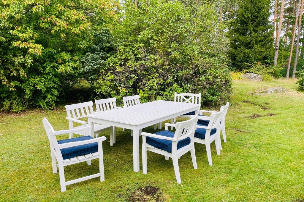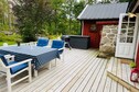 Perfect voor de Zweedse zomer zijn er grote ruimtes voor tijd buiten, en is er goed gebruik gemaakt van de overgang van binnen naar buiten met een ruime overdekte veranda waar je kunt genieten van het prachtige uitzicht. Er zijn zitplaatsen buiten op het grote terras, evenals op de kleine patio aan de andere kant van het huis, zodat je kunt genieten van de laatste stralen van de avondzon.