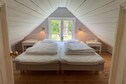 Op de eerste verdieping bevinden zich naast de keuken en de woonkamer een slaapkamer met 2 eenpersoonsbedden en de badkamer. Boven, via een vrij steile trap, vind je de bovenverdieping, die een slaaploft is met een lagere plafondhoogte. Hier kun je alleen in het midden van de kamer staan als je van gemiddelde lengte bent. Boven zijn er 2 gezellige slaapkamers met goede kwaliteit tweepersoonsbedden, evenals een eenpersoonsbed in de hal waar je bovenkomt als je de trap opgaat. Er is ook ruimte voor een reisbedje voor een 0-2-jarige als iemand dit mee wil nemen.