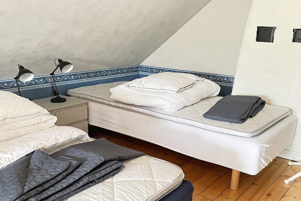 Welcome to a charming apartment on a beautiful farm in the heart of Skåne! Here, you can enjoy a relaxing holiday with access to a pool and scenic surroundings perfect for walks. The accommodation is well-equipped and consists of a kitchen and dining room on the ground floor with a bathroom nearby. On the upper floor, there are four single beds, making it perfect for families or smaller groups. During your stay, you have free access to the pool, where you can cool off and enjoy sunny days. The farm is inhabited by the owner, who also has a friendly dog, happy chickens, and in the summer, you might even see storks. There are large areas to explore and roam, but we kindly ask you to respect the private areas of the farm. Come and experience the tranquility and beauty of the farm – we look forward to welcoming you! The indoor wood-burning stove must not be used. Some of Sweden's finest beaches along Österlen, Sandhammaren, Rörum's beach, and Kivik may entice beach lovers. If you prefer fishing, Vombsjön and many other lakes are just a short distance away. Ystad, Simrishamn, and Tomelilla are charming towns if you wish to shop, enjoy good food, or simply stroll around. If you love food, you should definitely visit Byn Crêperie in Vollsjö or try the famous Skånsk egg cake at Brösarps Gästis. A bit further away, you have Ales Stenar, Kåseberga, and much more. You can even take the ferry from Ystad to Bornholm. For those who enjoy playing golf, there are many golf courses within 30-45 minutes' drive.