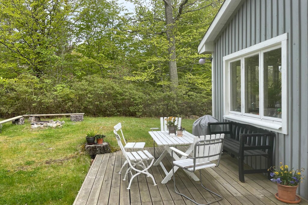 Dieses Ferienhaus befindet sich auf einem großen, schönen Naturgrundstück und das erste, was Sie sehen, ist die großzügige Terrassenfläche, auf der Sie lange sonnige Tage entweder in der Hängematte im Schatten oder auf einer der Sonnenliegen verbringen können. Im Inneren des Ferienhauses befindet sich ein Schlafzimmer mit einem Doppelbett und einem Etagenbett. Sie haben ein großes luftiges Wohnzimmer mit einem Essbereich mit hohen Decken zur Verfügung. Dort steht zudem ein geräumiges Schlafsofa für zwei Personen, ein Fernseher und ein ganzes Regal mit verschiedenen Gesellschaftsspielen. Das Haus ist von den Nachbarhäusern aus nicht einsehbar, aber Sie haben eine Straße vor sich. Zur Straße hin gibt es einen Zaun mit Pforte. Wenn Sie die Straße überqueren, kommen Sie nach 800 m zum Meer und einem hübschen Platz namens Bökevik. Dort können Sie baden, zudem findet ein weiteres Badeufer in der Nähe bei Vieryd. Die nächste Stadt ist Ronneby, eine schöne Stadt mit Einkaufsmöglichkeiten und schönen Parks. Es gibt auch einen Ronneby-Brunnen mit Spa und Erlebnisbad. Hier können Sie auch mit der Fähre nach Karön übersetzen, das ein beliebtes Touristenziel ist. Wenn Sie einen Ausflug machen möchten, ist der Schärenverkehr nur 10 Autominuten entfernt. Hier können Sie von Insel zu Insel fahren, z.B. ab Järnavik mit der Fähre zur schönen Insel Tjärö übersetzen. Im Eriksberg Hotel & Nature Reserv können Sie mit Ihrem eigenen Auto auf Wildsafari gehen. Blekinge lebt von lokalen Lebensmittelproduzenten und Sehenswürdigkeiten. Besuchen Sie Hofläden, Cafés und Restaurants, die mit Respekt vor unserer Natur arbeiten. Wenn Sie in der Natur bleiben möchten, gibt es ein ganzes Wegenetz zum Radfahren, Kajakfahren und Wandern. Eine App hilft Ihnen beim Navigieren.