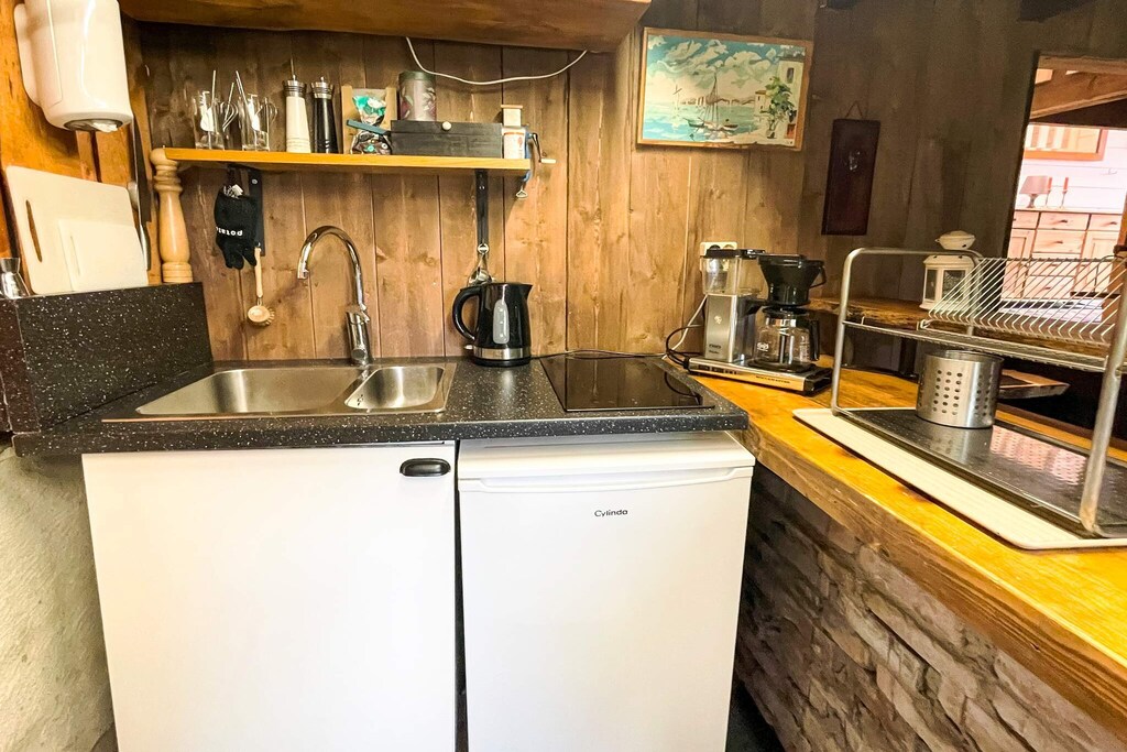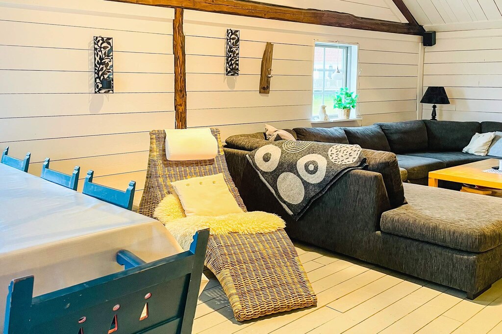 Schönes und rustikales Haus in einem ehemaligen Stall mit teilweisem Meerblick und ruhiger Lage auf der wunderschönen Halbinsel Rossö auf Orust. Ideal für eine Familie, die in ländlicher Umgebung und in der Nähe von Salzwasserschwimm- und Wandergebieten wohnen möchte. Das Stallgebäude befindet sich auf einem ehemaligen Bauernhof aus dem 19. Jahrhundert, angrenzend an ein Naturschutzgebiet und Vogelbeobachtungsgebiete. Das Haus wurde 2013 geschmackvoll und persönlich renoviert, wobei alte Balken, Holz, Ziegel usw. verwendet wurden. Am Eingang befindet sich ein Balkon mit herrlicher Abendsonne und Blick auf die Umgebung und den Kalvöfjord. Im Erdgeschoss befinden sich ein Flur und ein Badezimmer mit Duschkabine, dessen Decke der Eigentümer mit seinen alten Schallplatten dekoriert hat. Eine halbe Treppe tiefer (niedrige Decke an der Treppe) befinden sich die Barküche und das Schlafzimmer im ehemaligen Stall. Hier ist viel vom Stallgefühl erhalten geblieben, mit Stallboxen und unbehandelten Betonböden, die harmonisch mit den persönlichen Einrichtungsdetails harmonieren. Die Barküche verfügt über einen Minibackofen mit zwei Kochplatten. Helles Schlafzimmer mit offenem Stalleingang (ohne Tür) und drei Einzelbetten, die tagsüber als Sofas mit Kissen dienen. Ein perfektes Schlaf-/Wohnzimmer für Kinder und Jugendliche, die gerne etwas für sich allein wohnen. Im Obergeschoss befindet sich das geräumige, helle Wohnzimmer mit hohen Decken und freiliegenden Balken. Sowohl im Sofabereich als auch am Esstisch ist ausreichend Platz für die ganze Familie. In einer gemütlichen, mit einem Vorhang abgeschirmten Nische befindet sich ein bequemes Doppelbett. Sie wohnen idyllisch mit grasenden Kühen und Schafen auf den Weiden und nur wenige Gehminuten von Rossös schönem Badegebiet mit Klippen, Steg, Badetreppe und Sprungturm entfernt. Nutzen Sie die Gelegenheit für Wanderungen im Naturschutzgebiet auf Rossö. Hier gibt es schöne Wandergebiete mit Eichenhainen und Weiden. Die angrenzende Bucht ist ein beliebter Ort zur Vogelbeobachtung mit guten Chancen, Adler und Watvögel zu sehen. Es gibt auch hervorragende Angelgewässer für Makrelen und Forellen, unter anderem. Erleben Sie die Schären und Fischerdörfer rund um Orust. Fahren Sie mit der Fähre zu den malerischen Inseln Käringön und Gullholmen. Wenn Sie Lust auf Shopping haben, sollten Sie Göksäter mit dem Schnäppchen-Kaufhaus Arvid Eriksson unbedingt besuchen, das nur wenige Autominuten entfernt liegt. Der Sommer auf Orust bietet viele Aktivitäten – Festivals, Kajakfahren, Tauchen, Angeln, Golfen oder einfach nur die Ruhe und die wunderschöne Natur genießen. Der Eigentümer verfügt über eine Garage in einem Teil des Stallgebäudes, der vom Hof aus zugänglich ist. Der Wohnbereich bietet von den anderen Gebäuden des Hofes aus keine Sicht. Eine kleine, wenig befahrene Straße führt direkt vor dem Haus vorbei. Willkommen in einem originellen und spannenden Zuhause in toller Lage auf der schönen Insel Rossö!