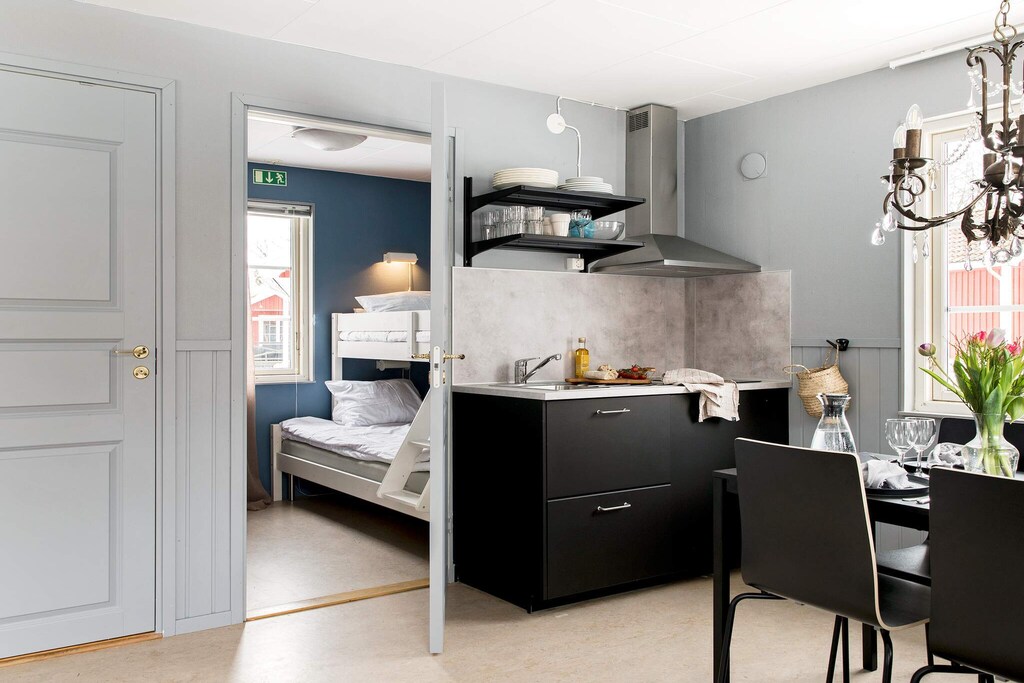 Welcome to a cozy cabin in an idyllic cottage village next to a wonderful farm, surrounded by forest and the sound of a babbling brook. Here, you can enjoy a comfortable stay with high standards, relax, and savor the beauty of nature, all just a few kilometers from the highly regarded Gyllebosjön and the scenic Forsemölla waterfall! During the summer months, you have the option to rent a wood-fired hot tub and enjoy a delicious breakfast buffet at an affordable cost or visit the small shop to buy necessities during your stay. The cabin is well-planned despite its size and has two inviting bedrooms, both equipped with bunk beds (120+80 cm wide). Additionally, there is an extra sleeping spot on the sofa bed in the living room. The kitchen is equipped to prepare dinners or to have a pleasant start to the morning. On the veranda outside, you can enjoy the tranquility while the children play or explore the surroundings. Pets are welcome to join you but should not be on the furniture to maintain the cabin's freshness. This is a place for those who want to escape the stress and bustle of city life, focusing on peace and quiet. If you want to go on excursions, this location is ideal. You have incredibly beautiful beaches along Ystad, Löderups Strandbad, and Sandhammaren. You have Ystad, Simrishamn, and Tomelilla if you wish to shop, eat well, or just stroll around. There is a highly acclaimed café here, "Olof Viktors," which is highly recommended. Also, make sure to visit Gamla Bageriet – Örnahusen, Fredrik på Eklaholm, and Glimmingehus. A few miles away, you have Ales Stenar, Kåseberga, and much more. For the children, there is plenty to explore such as Skånes Djurpark, Ystad Djurpark, and Tosselilla Sommarland, among many other attractions. You can even take the ferry from Ystad to Bornholm. Make sure to also enjoy fishing in Skåne's many wonderful lakes. During the summer, there are many flea markets that are very popular with all visitors!