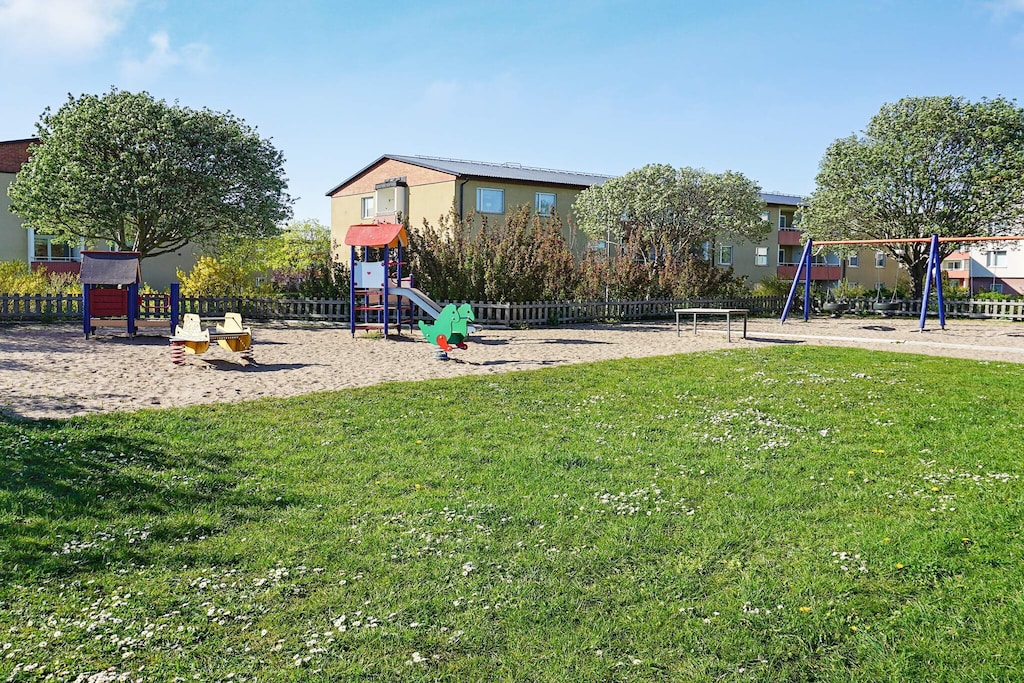 Auf Schwedens Ferieninsel Gotland können Sie hier in dieser schönen Ferienwohnung im Zentrum von Visby erholsame und zugleich aktive Urlaubstage verbingen. Sie wohnen in unschlagbarer Nähe zum Zentrum, Einkaufsmöglichkeiten, Visby Ringmur, zauberhafter Natur und vielem mehr! Die geräumige Wohnung hat einen schönen Frühstücksbalkon. Von hier aus erreicht man bequem zu Fuß oder mit dem Fahrrad alles, was Visby zu bieten hat und ist zudem in nur ca. 20 Minuten zu Fuß am Meer und an der schönen Promenade. Die Wohnung liegt in der 1. Etage und hat drei Zimmer und eine Küche sowie einen Balkon mit Blick in den Park. Es gibt zwei separate Schlafzimmer und ein großes Wohnzimmer mit zwei Betten, wobei der Schlafbereich durch eine Faltwand abgetrennt werden kann. Die Küche ist mit allem ausgestattet, was man so für den täglichen Bedarf braucht. Modernes Bad mit u.a. Dusche und Waschmaschine. Außerhalb des Apartmenthauses gibt es Platz, um sein Fahrrad abzustellen sowie schöne Grillplätze. Für Kinder gibt es mehrere Spielplätze gleich außerhalb des Hauses sowie einen Bolzplatz und ein Schwimmbad nur wenige hundert Meter entfernt. Visby und Gotland strotzen im Sommer nur so vor Leben und Aktivität. Neben herrlicher Natur gibt es auch eine große Auswahl an verschiedenen Aktivitäten, Restaurants, Cafés, kulturellen Attraktionen und netten kleinen Geschäften. Machen Sie einen Spaziergang entlang der alten Stadtmauer Visby Ringmur und schlendern Sie durch die charmanten Gassen in der Innenstadt von Visby. Genießen Sie anschließend ein Eis mit Blick zum unschlagbaren Sonnenuntergang an der Promenade. Diese Wohnung ist ein perfekter Ausgangspunkt, um ganz Gotland zu erkunden. Wenn Sie nach Norden fahren, dürfen Sie Fårö nicht verpassen und die berühmten Rauks sehen und auf Sudersand und Ekeviken baden, wo der Sand so weich wie Pulver ist. Wenn Sie nach Süden fahren, finden Sie u.a. den schönen Küstenabschnitt Ekstakusten mit magischem Ausblick zur Inselgruppe Karlsöarna, die Sie auch besuchen können. Burgsvik, Närsholmen und Ljugarn sind im Sommer ebenfalls einen Besuch wert. Ein Muss für die Kinder ist ein Besuch im Kneippbyn, dem großen Wasser- und Sommerland von Pippi Langstrumpf.