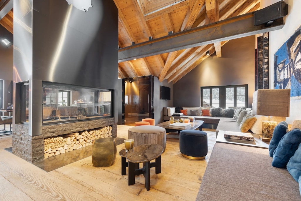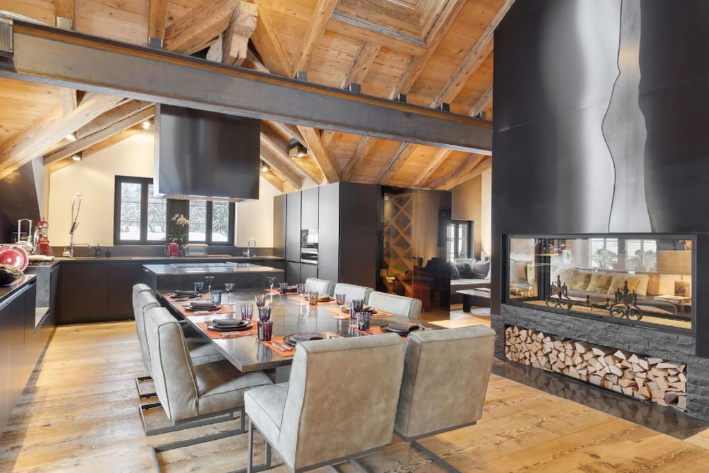 Deze moderne duplex met 4 slaapkamers in het hart van Gstaad combineert elegant design met doordacht comfort, waardoor het een ideale plek is voor gezinnen of groepen. Elke slaapkamer beschikt over een eigen badkamer en biedt privacy en gemak voor elke gast. De open woon- en eetkamer nodigt uit tot ontspanning, met een open haard voor gezellige avonden en een jacuzzi om te ontspannen na een dag in de buitenlucht. Een volledig uitgeruste keuken zorgt ervoor dat maaltijden moeiteloos zijn, terwijl het balkon een prachtig uitzicht biedt op het paleis van Gstaad en de promenade.